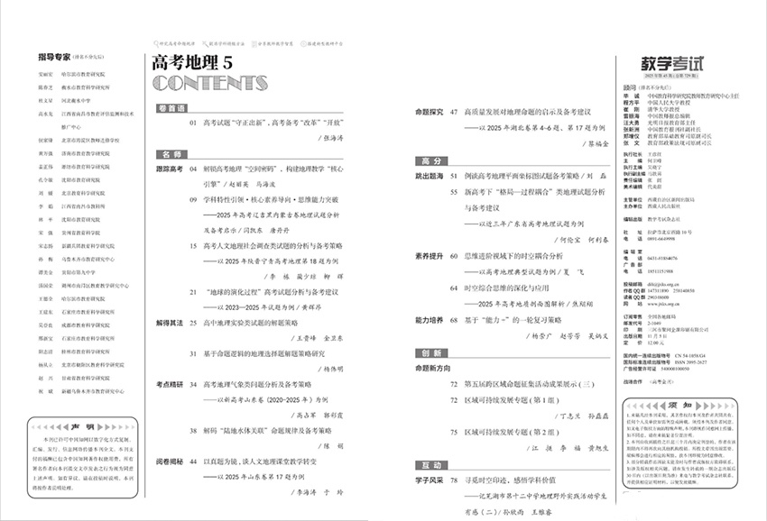 雜志的核心定位是“服務一線教學,推動評價改革”,緊密銜接新課標與高考改革趨勢。內容深度聚焦中高考評價體系研究、教材教法剖析、原創試題研發及復習備考策略,旨在搭建教育理論與教學實踐之間的橋梁,為教師專業發展提供堅實平臺。