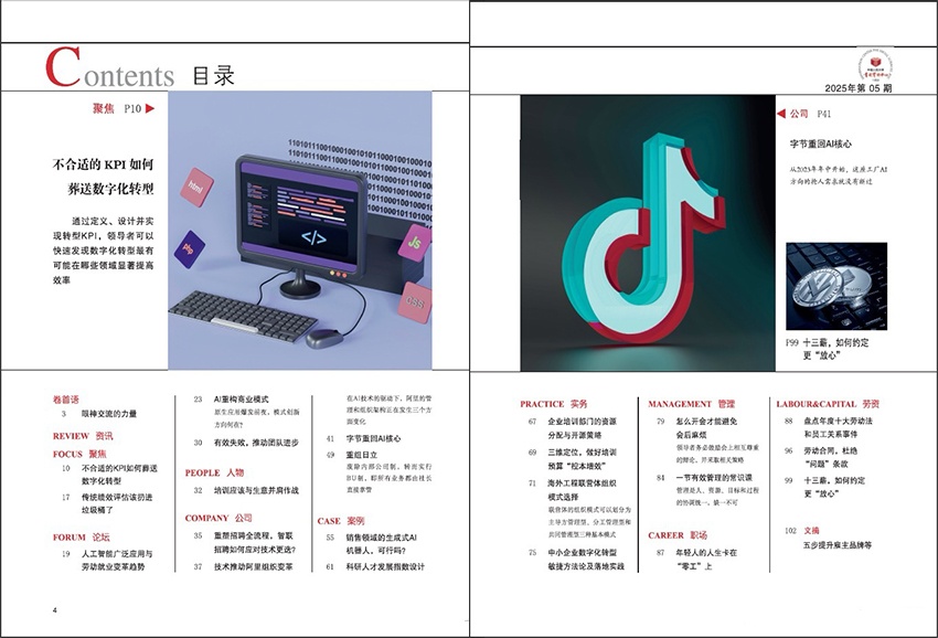 在行業價值層面,雜志不僅是HR從業者的專業成長伙伴,更是企業決策層的管理智囊。通過專題報道、深度訪談等形式,雜志持續關注數字化轉型、新生代員工管理、組織變革等時代議題,為讀者提供前瞻性思考與系統性解決方案。其內容既滿足企業人力資源管理的實操需求,如招聘技巧、員工激勵策略等,又兼顧長期戰略規劃,幫助組織構建可持續的人才競爭力,在人力資源開發與管理領域發揮著不可替代的引導作用。