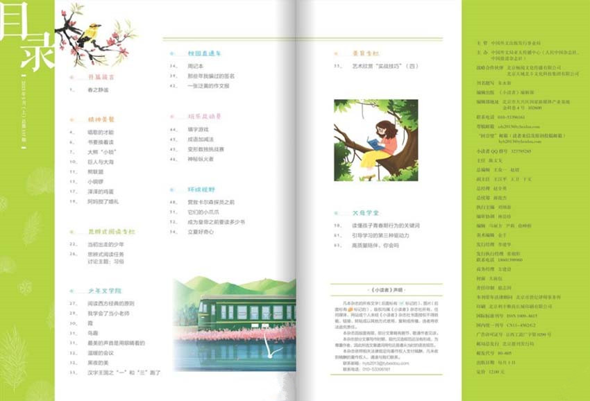 《小讀者》的主要欄目:讀經(jīng)典美文、學(xué)作文課堂、寫作文素材、趣小讀者俱樂部等。